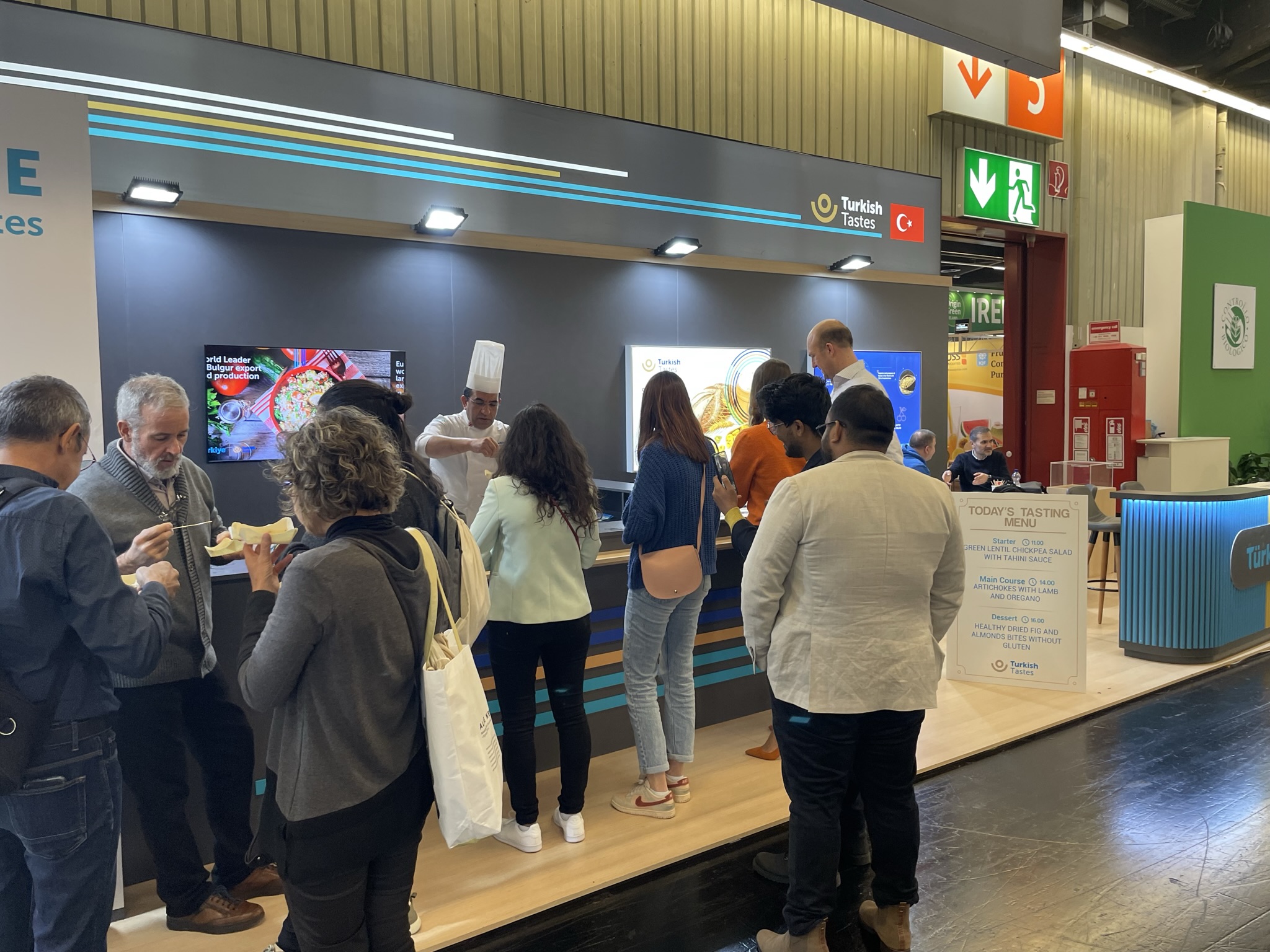Türkiye Marka standında Dünyaca Ünlü Türk Şef İbrahim Önen’in, Türk organik ürünleriyle; organik severlere geleneksel Türk mutfağıyla Batı mutfağının harmanlandığı birbirinden lezzetli yemekler hazırlayıp ziyaretçilerin hem gözüne hem de midesine hitap ettiğini vurgulayan Eskinazi, “Avrupalılara bir lezzet şöleni yaşattık. Milli katılım organizasyonumuzla 16, bireysel 26 olmak üzere toplam 42 Türk firmamız BioFach Fuarı’na katıldı. Türk firmaları yoğun olarak; kuru meyve, tahıl ve bakliyat, dondurulmuş gıda, fındık, meyve suyu ürünlerini sergiledi. Fuar, 95 ülkeden 2 bin 765 firma ve 135 ülkeden 36 bin ziyaretçiyi buluşturdu.”
