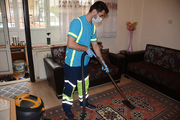Evlere temizliğe giden ekibin üyesi olan Yılmaz Karadağcı, “ Hizmetimiz genel temizlik ve Covid-19 salgını dezenfekte çalışmalarını kapsamaktadır. 65 yaş üstü ihtiyaç sahibi ve bakıma muhtaç kişilerin ev temizliğini yapıyoruz. Gittiğimiz evlerde hem temizliğimizi yapıyoruz hem de muhabbet ediyoruz. Evlerine gittiğimiz kişiler bizi güler yüz ile karşılıyorlar. Teşekkür ediyorlar. ‘Allah razı olsun’ diyorlar. Biz de memnunuz. İşimizi severek yapıyoruz.” dedi.