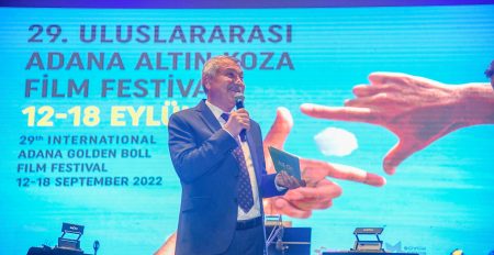 Orhan Kemal Emek Ödülleri Töreni’ne katılan sanatçılar, CHP İstanbul İl Başkanı Canan Kaftancıoğlu, DİSK Genel Başkanı Arzu Çerkezoğlu, Eşber Yağmurdereli, ilçe belediye başkanları, il başkanları, siyasiler, sendikacılar, milletvekilleri, konuklar ve Adanalıları selamlayan Başkan Zeydan Karalar, “Biz sanattan, demokrasiden, insan haklarından, emekten yanayız. Sinema şehri Adana’nın en anlamlı değerlerinden Uluslararası Adana Altın Koza Film Festivali’ni 29. kez gerçekleştiriyoruz. 1969’da başlayan, zaman zaman ara verilen festivali biz 3 yıldır pandemiye rağmen coşkulu, sinemaya, Adana’ya, sanatçılarımıza ve sinema kenti Adana’ya yakışır şekilde gerçekleştirmeye çalışıyoruz. Bu yıl ve daha önceki yıllarda kaybettiğimiz sinema sanatçılarımızı rahmet ve saygıyla anıyoruz” dedi.