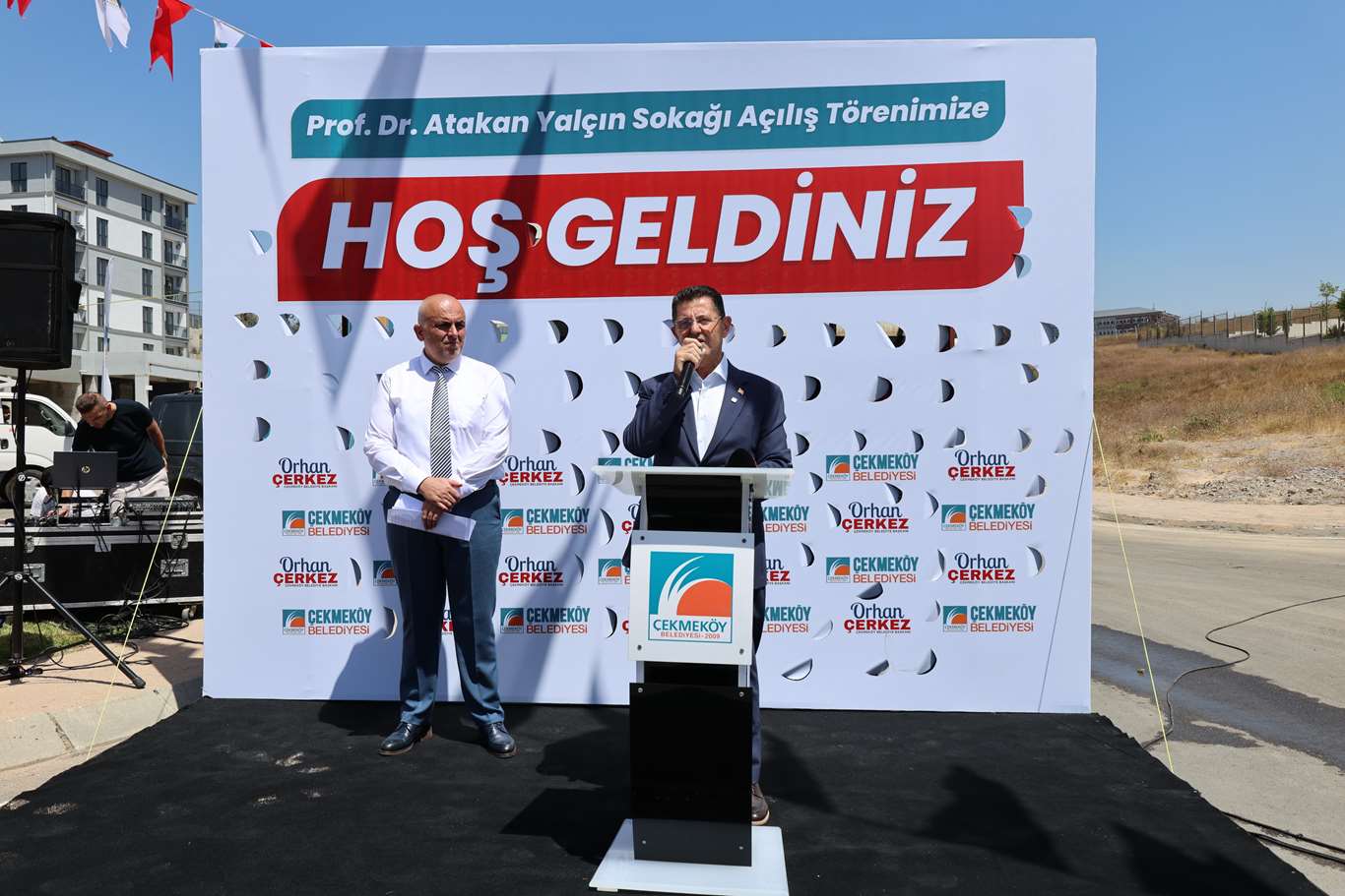 Çekmeköy Belediye Başkanı Orhan Çerkez: “Bugün Bolu’daki elim yangında kaybettiğimiz yetmiş sekiz canımızdan biri olan değerli hocamız Atakan Yalçın’ın ismini sonsuza dek yaşatmak, eğitim verdiği üniversiteye çıkan caddeye adını vermek için bir araya geldik. Atakan Yalçın hocamız bizler için de çok değerli bir bilim insanı ve ilçemizde ömrünü eğitime adayan kıymetli bir hocamızdı. Onun kaybetmenin büyük üzüntüsünü yaşadık. Bugün de burada sonsuza dek ismini yaşatmak için bir araya geldik. İsmi bu sokağa verdik. Çalışmada emek sarf eden, bizlere birlikte çalışan mesai arkadaşlarıma, meclis üyelerimize ve katkı sunan herkese sonsuz teşekkür ediyorum” dedi.