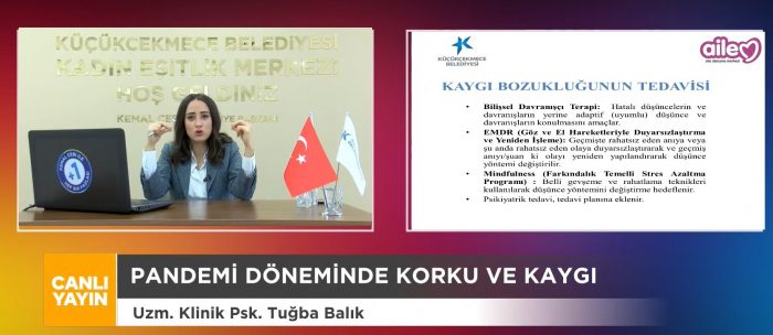 Pandemi süreci boyunca eğitim ve kültürel hizmetlerini dijital platforma taşıyan Küçükçekmece Belediyesi, Covid-19 pandemi süreci nedeniyle eve kapanmak zorunda kalan vatandaşlarla uzman isimleri buluşturmaya devam ediyor. Youtube kanalı Küçükçekmecem TV’ye konuk olan Uzm. Klinik Psikolog, pandemi korku ve kaygısı yaşayanlara önemli tavsiyelerde bulundu.