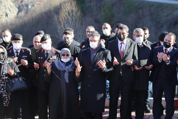 Bu duygu ve düşüncelerle Sultan Alparslan’dan bugüne kadar, Cumhuriyetin kurucusu Gazi Mustafa Kemal Atatürk başta olmak üzere ülkemizin imarında, iyasında, kafasıyla, kalemiyle, kılıcıyla, silahıyla bu coğrafyanın Anadolu’nun vatan olmasına katkı sağlayan en kıymetli varlıkları olan canlarını seve seve veren bütün şehitlerimizi, büyüklerimizi, ecdadımızı bir kez daha rahmetle, minnetle, minnettarlıkla ve şükranla anıyor, ailelerine hürmetlerimi ifade ediyorum. Gazilerimizden dar-ı bekaya irtihal edenlere rahmet diliyorum.” Konuşmaların ardından şehit aileleri ve gazilere anı şilti, şehitliğin çevre düzenlemesine emeği geçenlere de plaket verildi. Program yapılan dua ile son buldu.