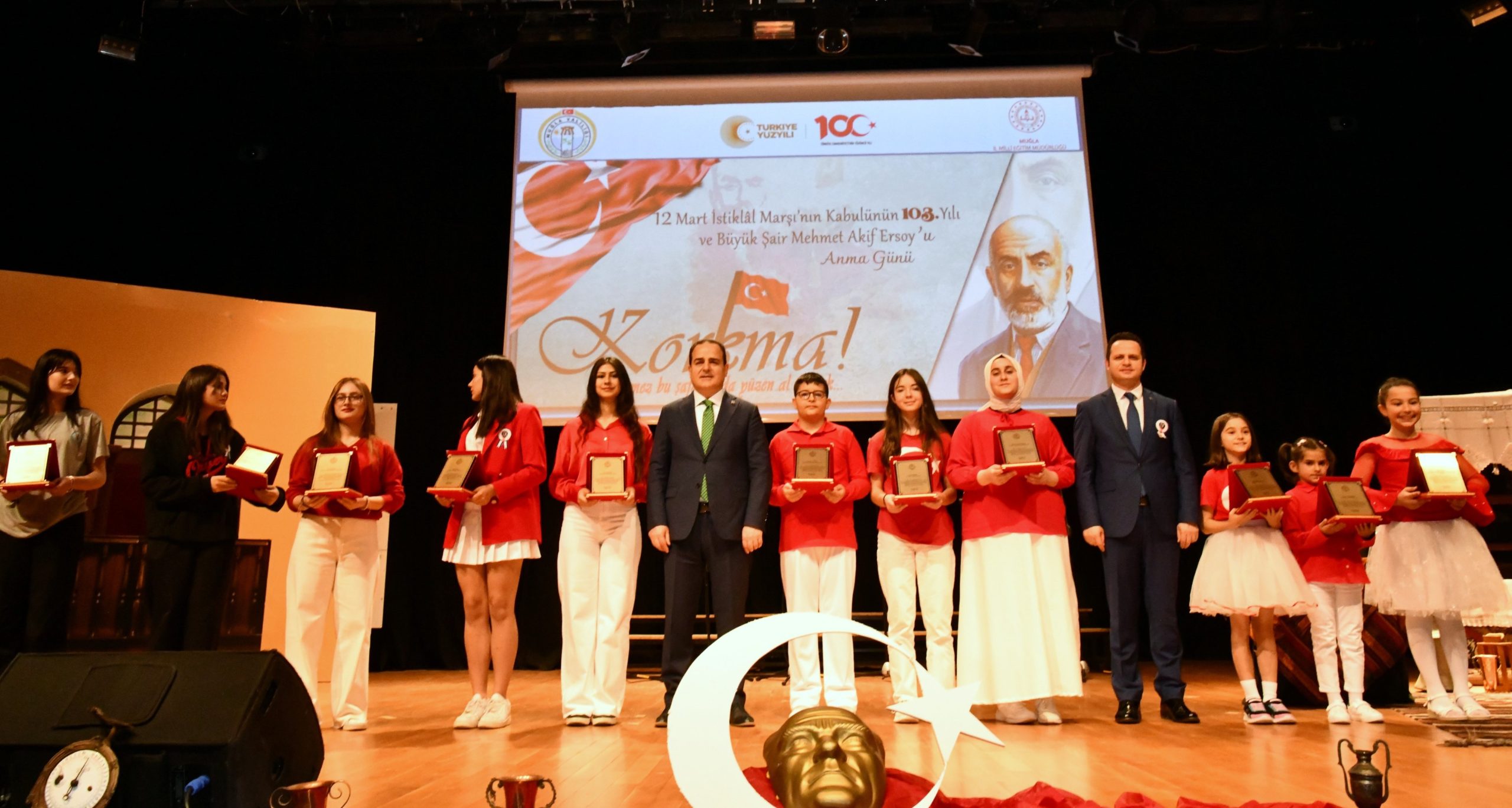12 Mart İstiklal Marşı’mızın Kabulü ve Mehmet Akif Ersoy’u Anma Günü etkinlikleri kapsamında düzenlenen ‘İstiklal Marşı’mızın Tamamını Ezbere Güzel Okuma’ ve ‘Özlü Söz’ yarışmalarında dereceye giren öğrencilerimiz ödüllerini Vali İdris Akbıyık’tan aldı.