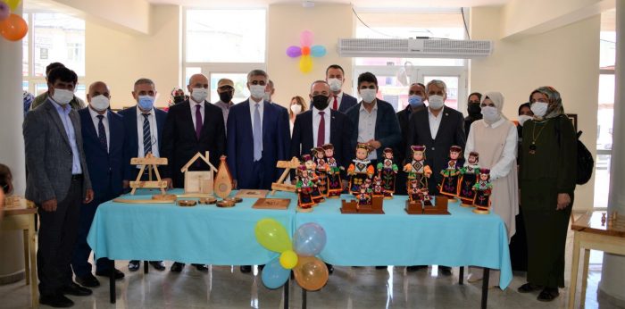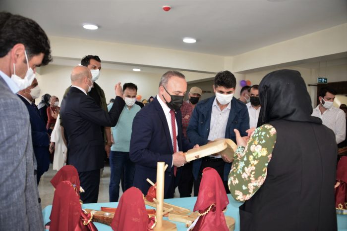 Açılış kurdelesinin kesilmesinin ardından Kültür Merkezinde incelemede bulunularak, İlçe Halk Eğitim Merkezi Müdürlüğünce açılan el sanatları sergisi gezildi.