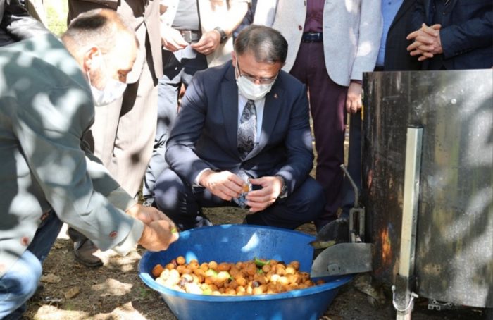 birlikte ceviz hasadı yapan ve ceviz soyma makinesini inceleyen Vali Dr. Ozan Balcı, çiftçilere bereketli ve hayırlı bir sezon diledi.