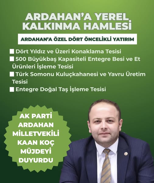 AK Parti Ardahan Milletvekili Kaan Koç’un duyurduğu projeler, şehrin üretim, istihdam ve kalkınma potansiyelini artırmayı hedefliyor.