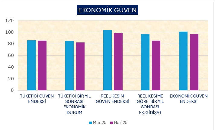 - 2025 Haziran ayı Tüketici güven endeksi, bir önceki yıla göre geriledi.