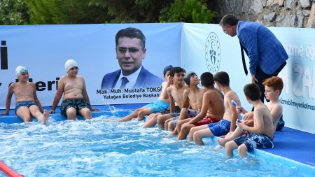 Gençlik ve Spor İl Müdürü Musa Kazım Açıkbaş ise, “Cumhurbaşkanımız Recep Tayyip Erdoğan’ın 2018 yılında ilan ettiği 100 günlük eylem planı çerçevesinde ilan ettiği 100 günde 100 bin gencimize ücretsiz yüzme öğretme projesi, 2022 yılı itibarıyla yaklaşık 3,5 milyon gencimize ücretsiz yüzme öğretmenin onur ve gururunu yaşıyoruz. Gençlik ve Spor Bakanlığı olarak bir strateji geliştirdik, Muğla Gençlik ve Spor Müdürlüğü olarak da bir katkı yapmak istedik, havuza ve denize ulaşamayan gençlerimize, havuzu biz götürmeyi planladık. Bu doğrultuda ilk etapta Yatağanımıza portatif yüzme havuzu planladık, Yatağan Belediye Başkanımız Mustafa Toksöz’ün de katkısıyla 15 gün gibi kısa bir sürede tamamlayarak hizmete açtık. Şuana kadar 300’ün üzerinde çocuğumuz, ücretsiz kurslarımızdan faydalanmak için kayıt yaptırdı. Bu bizi son derece memnun etti” diye konuştu.
