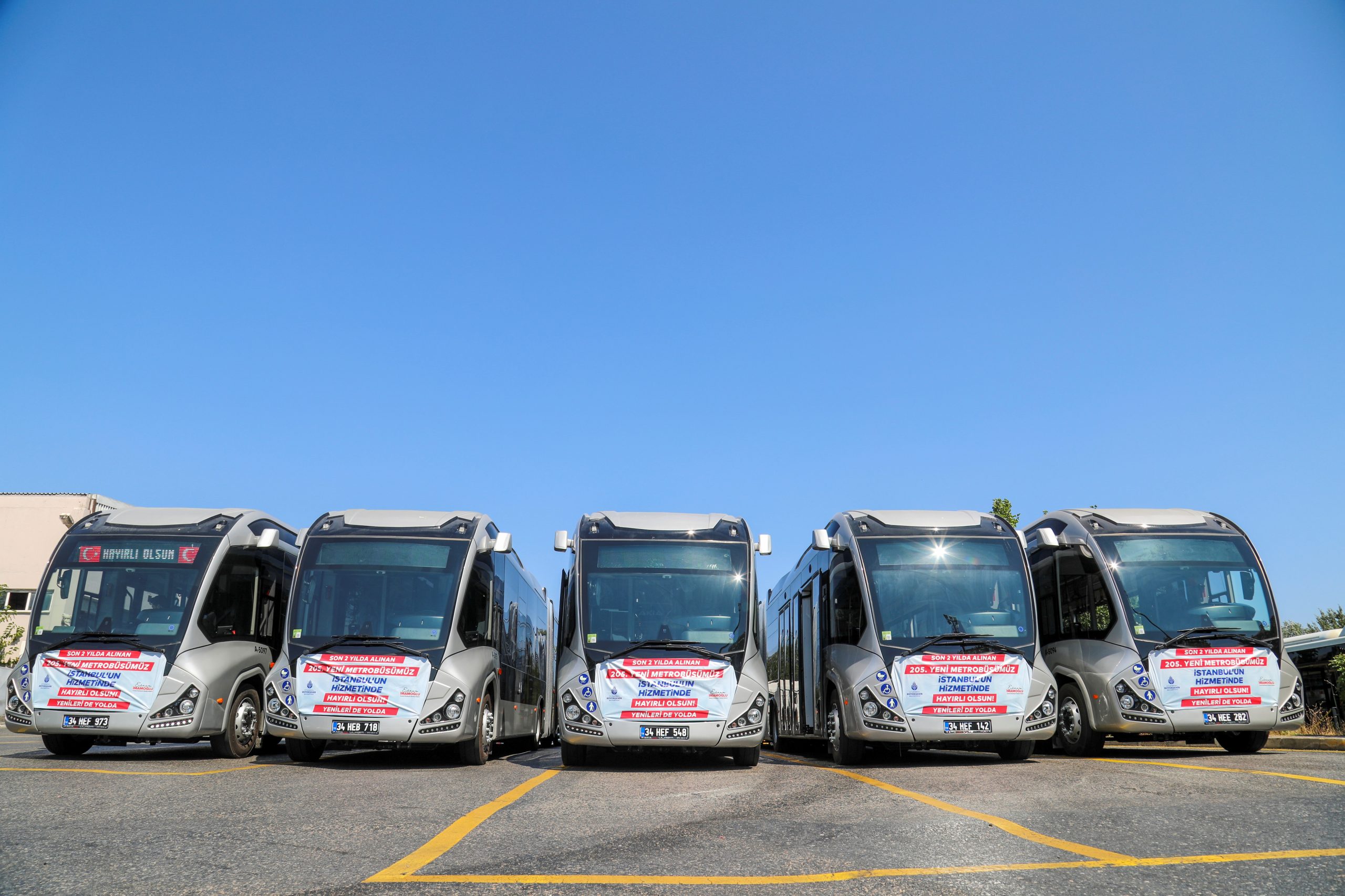 Tamamı yerli üretim, akıllı ulaşım sistemleri ile donatılmış, güçlü ve konforlu araçlar ile metrobüs filosu genişletiliyor. Bu kapsamda 5 yeni yüksek kapasiteli metrobüs daha dün İstanbulluların hizmetine sunuldu.