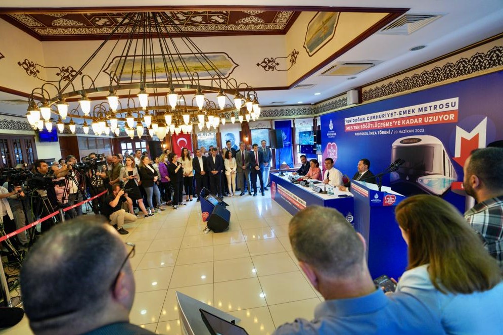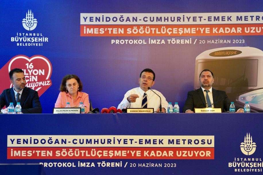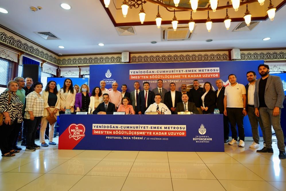 Konuşmaların ardından İBB Genel Sekreter Yardımcısı Pelin Alpkökin, İBB Raylı Sistem Daire Başkanı Ceyhun Avşar ve Metro A.Ş. Genel Müdürü Özgür Soy; Söğütlüçeşme-Yenidoğan metro hattının “Uygulamaya Esas Kesin Projesi” protokolünü, İmamoğlu’nun şahitliğinde, tablet üzerinden imzaladı.