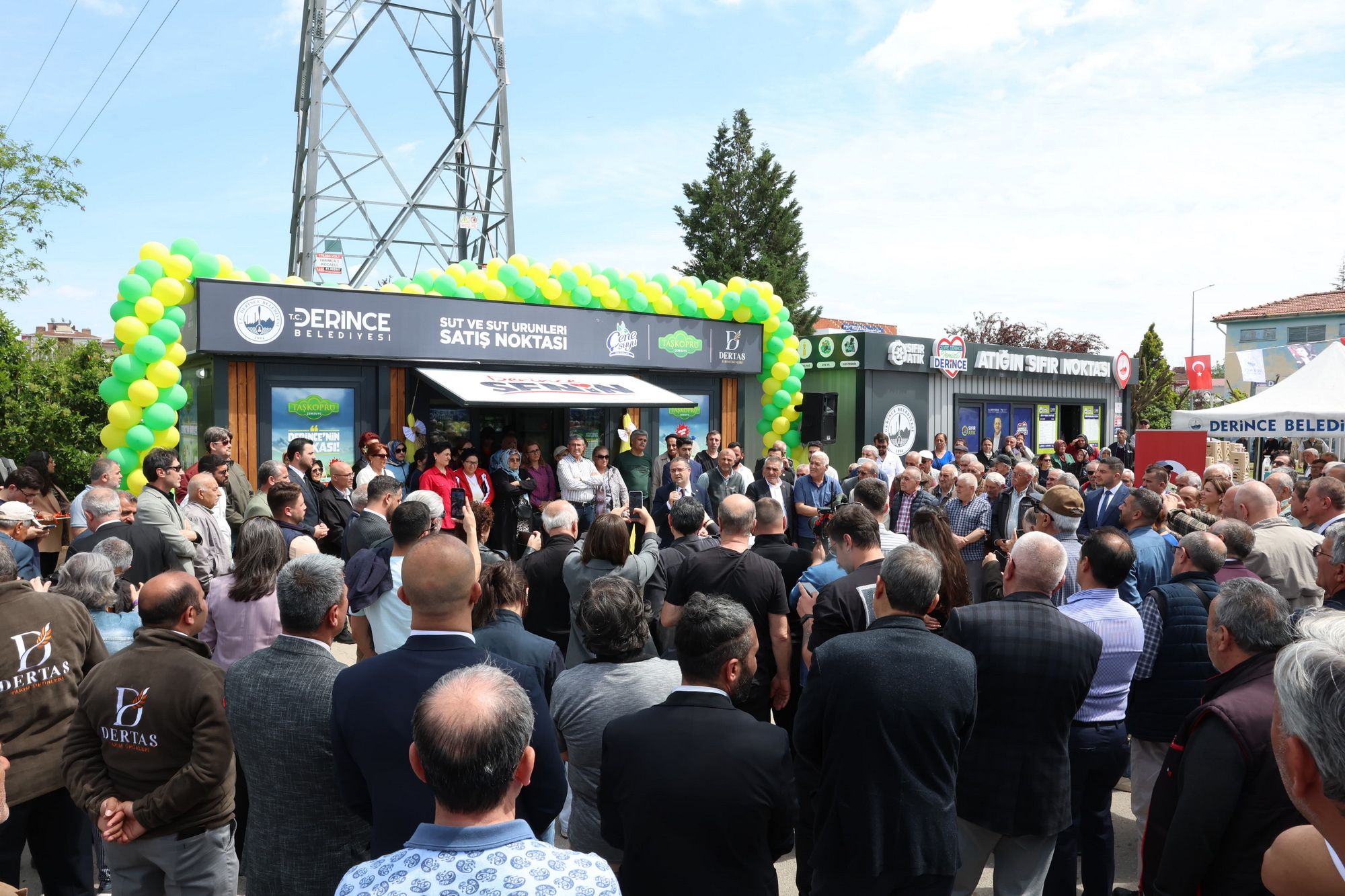 DERTAŞ Tesisleri’nde hazırlanan taze, doğal ve uygun fiyatlı ürünlerin Çenesuyu Kaşık Tesisleri, Yelken Kafe Restaurant ve Beşdivan Tesisleri’nde satışları devam ederken açılışı yapılan Taşköprü Süt ve Süt Ürünleri Satış Noktaları da organik ürünlerin üreticiden tüketiciye aracısız olarak sunulmasına fırsat sağlayacak. Taze ve katkısız ürünlerin, doğrudan üreticiden tüketiciye ulaştırılacağı yeni modelle, vatandaşların kaliteli ürüne erişimi kolaylaşırken yerel ekonomiye katkı da sağlanacak. Derince Belediye Başkanı Av. Sertif Gökçe’nin 10 mahallede 10 ayrı satış noktası hedefiyle hayata geçirdiği Taşköprü Süt ve Süt Ürünleri Satış Noktaları uygulaması üç noktada başladı. İlk etapta Çenedağ Şubesi (Derince Tünel Üstü), Yenikent Şubesi (Muhtarlık Yanı) ve Yavuz Sultan Şubesi (60 Evler Merkez Camii Karşısı) faaliyete geçerken bu üç merkez için açılış töreni düzenlendi.