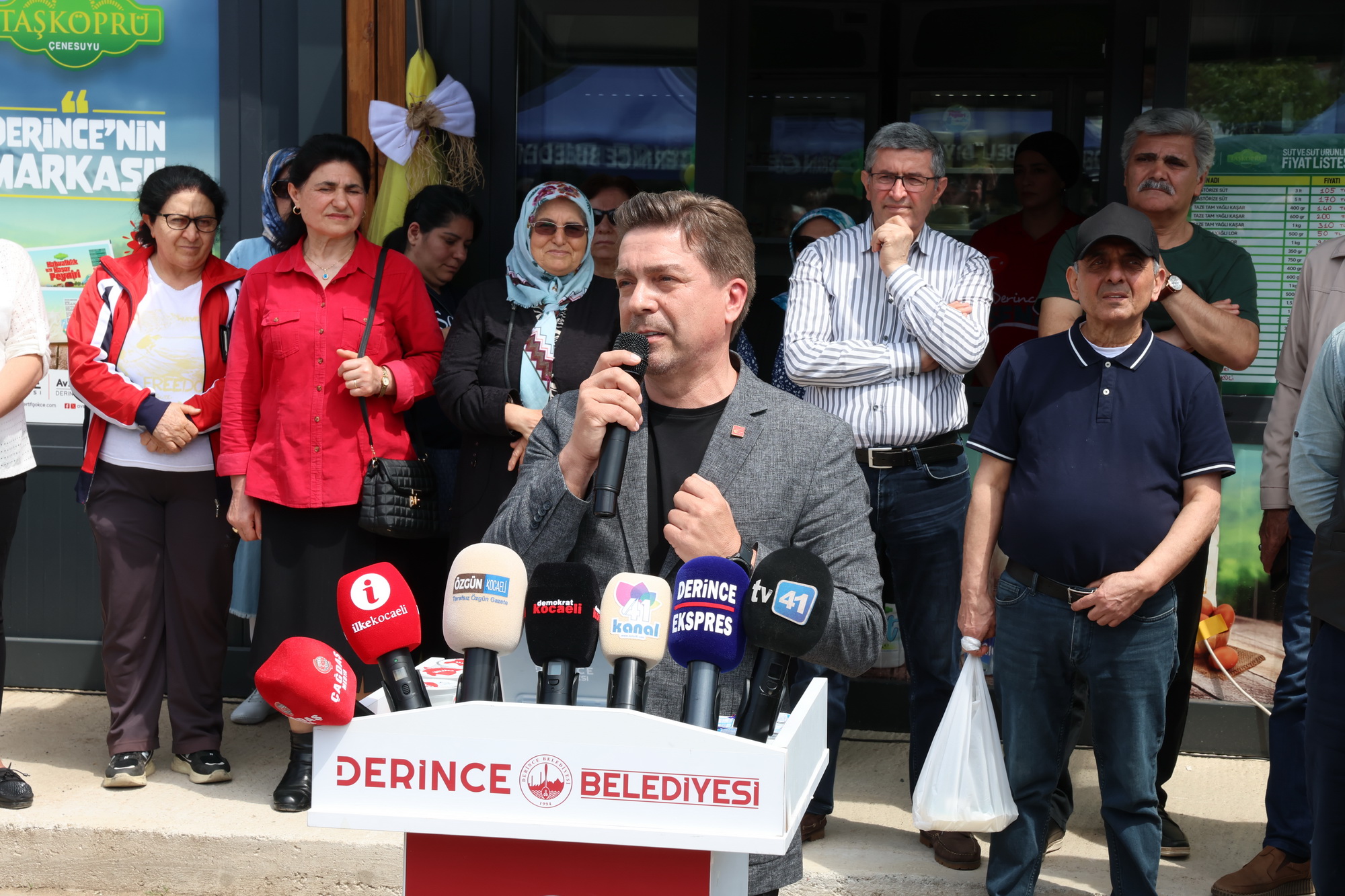 Derince Belediye Başkanı Av. Sertif Gökçe’nin ev sahipliğinde Yenikent Şubesi’nde düzenlenen açılış töreni CHP Kocaeli Milletvekilleri Prof. Dr. Mühip Kanko ve Nail Çiler, CHP Kocaeli İl Başkanı Bülent Sarı, CHP Derince İlçe Başkanı Av. Orkun Utkubaş, belediye başkan yardımcıları, meclis üyeleri, muhtarlar, siyasi parti temsilcileri, sivil toplum kuruluşlarının temsilcileri ve ilçe sakinlerinin yoğun katılımıyla gerçekleşti. Açılışta ayrıca ürünlerin tarladan sofraya gelene kadar olan serüvenini anlatan DERTAŞ tanıtım filmi büyük ilgiyle izlendi. Film gösteriminin ardından bir konuşma yapan Milletvekili Mühip Kanko, “Cumhuriyet Halk Partili belediyeler olarak az laf, çok iş yapıyoruz. Daha önce biz bu ürünlerin test için örneklerini almıştık. Bu proje çok güzel bir proje bunların devamı gelecek. Çok kaliteli ürünler. Bu tip hizmetlerimiz devam edecek. Sertif Başkanımızı tebrik ediyorum. Hayırlı olsun diliyorum.” dedi.