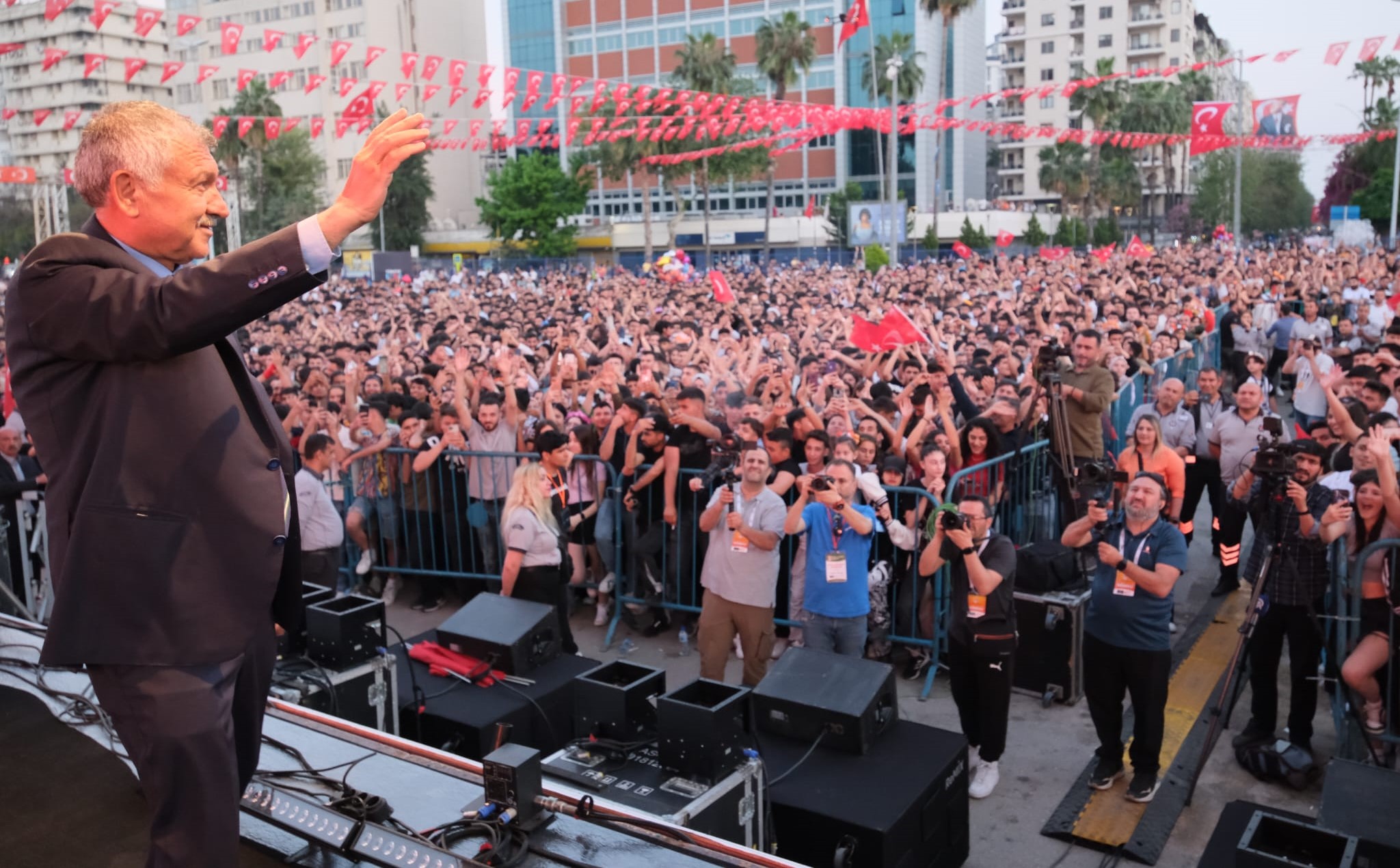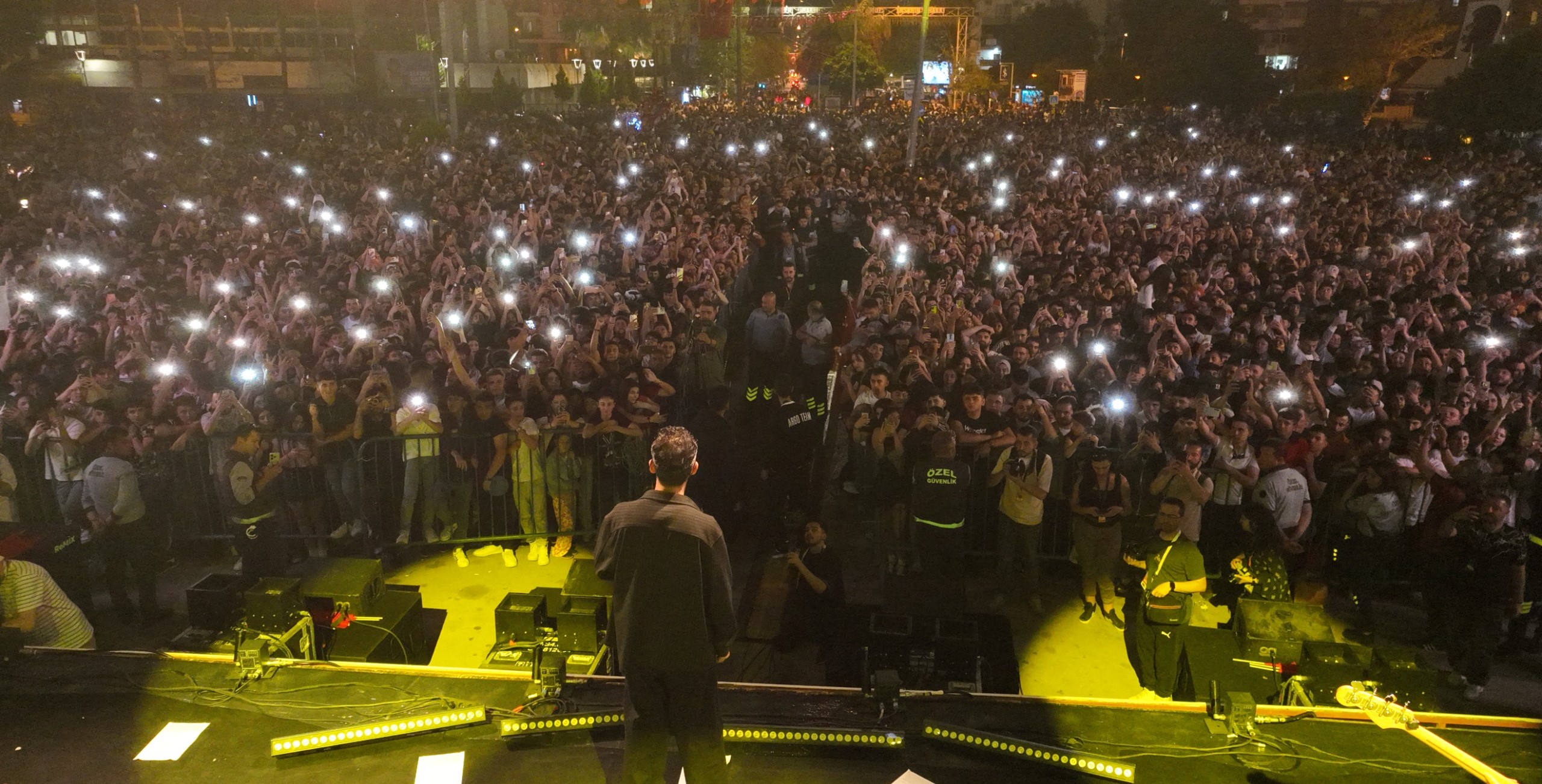 Başkan Zeydan Karalar, Uğur Mumcu Meydanı’nda gerçekleştirilen Gazapizm Konseri’ni de izledi ve katılımcılara hitap etti.