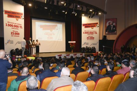 İşitme engellilerin anlaması için işaret diline çevrilen Başkan Zeydan Karalar’ın konuşmasını takiben kulüplere sembolik çekleri verildi.