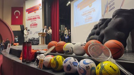 Seyhan Belediye Başkanlığı’ndan bu yana amatör spora destek veren, 200 bine yakın gencin spor eğitimi almasını sağlayan Başkan Zeydan Karalar; aralarında engelli spor kulüplerinin de bulunduğu 250 spor kulübüne 1 buçuk milyon lira nakdi yardım ve 700 okula 23 bin spor malzemesinin dağıtıldığı törende, Adana’nın spor kenti olması yolunda her geçen gün önemli aşama kaydedildiğini söyledi.
